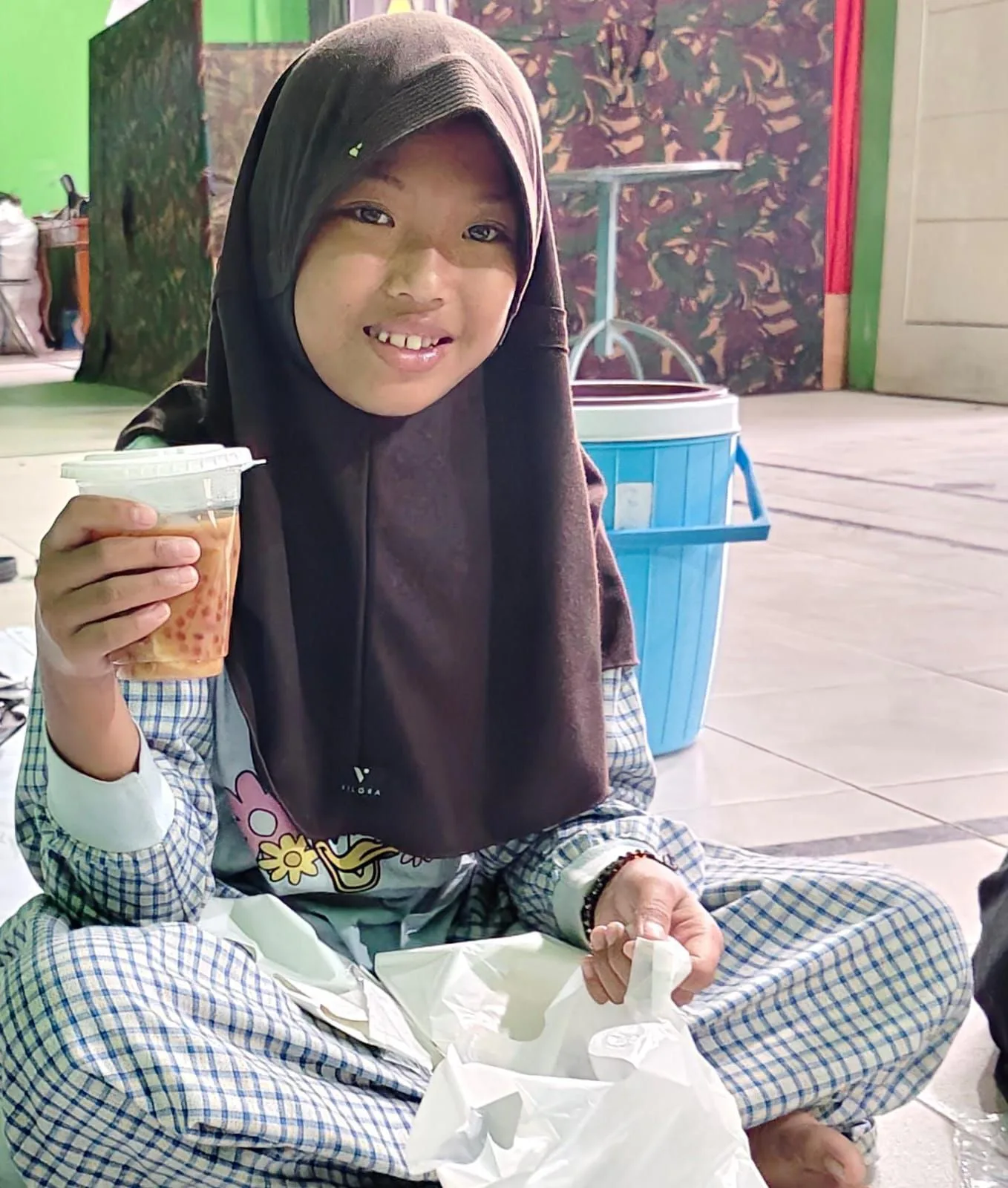 “Senang sekali bisa bantu Ibu dan Pak TNI bagi-bagi takjil. Tadi Kila ikut masukin ke plastik juga. Semoga yang menerima senang,” ujar Kila dengan senyum polosnya.