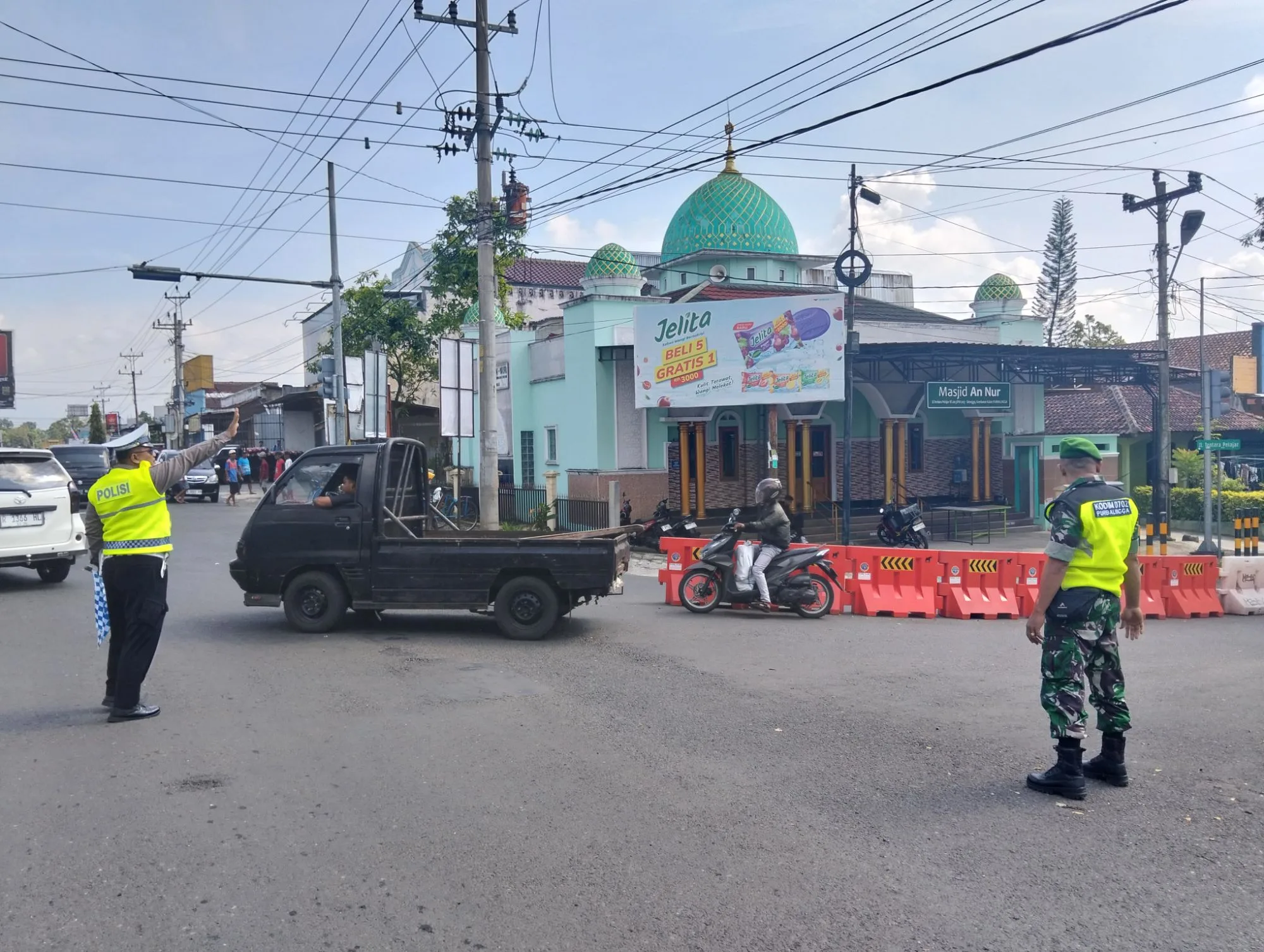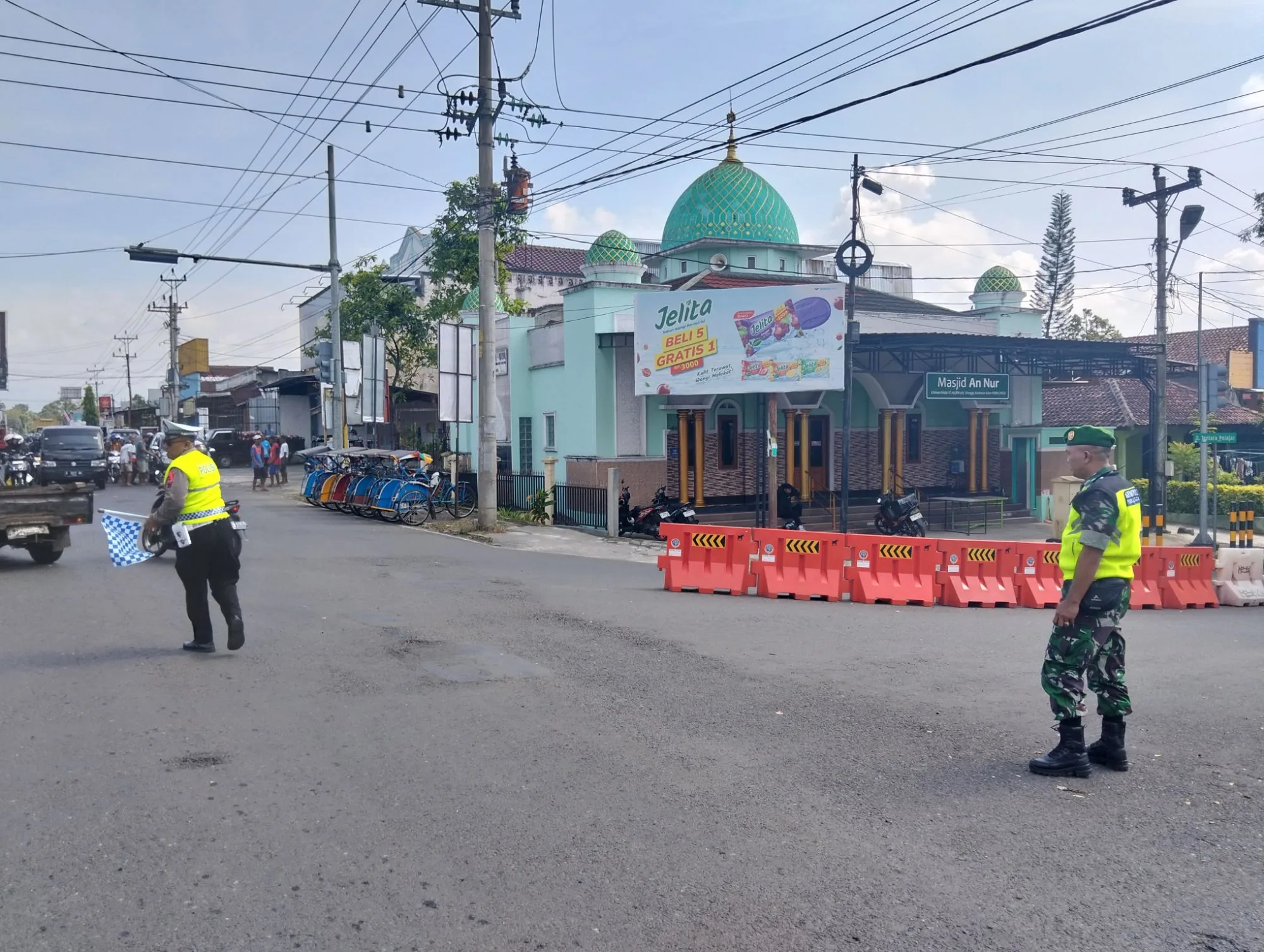 “Kami bersama petugas gabungan turun langsung ke lapangan untuk mengatur lalu lintas, membantu menyeberangkan masyarakat, serta mengantisipasi terjadinya kemacetan dan kecelakaan,” ujar Sertu Anton.