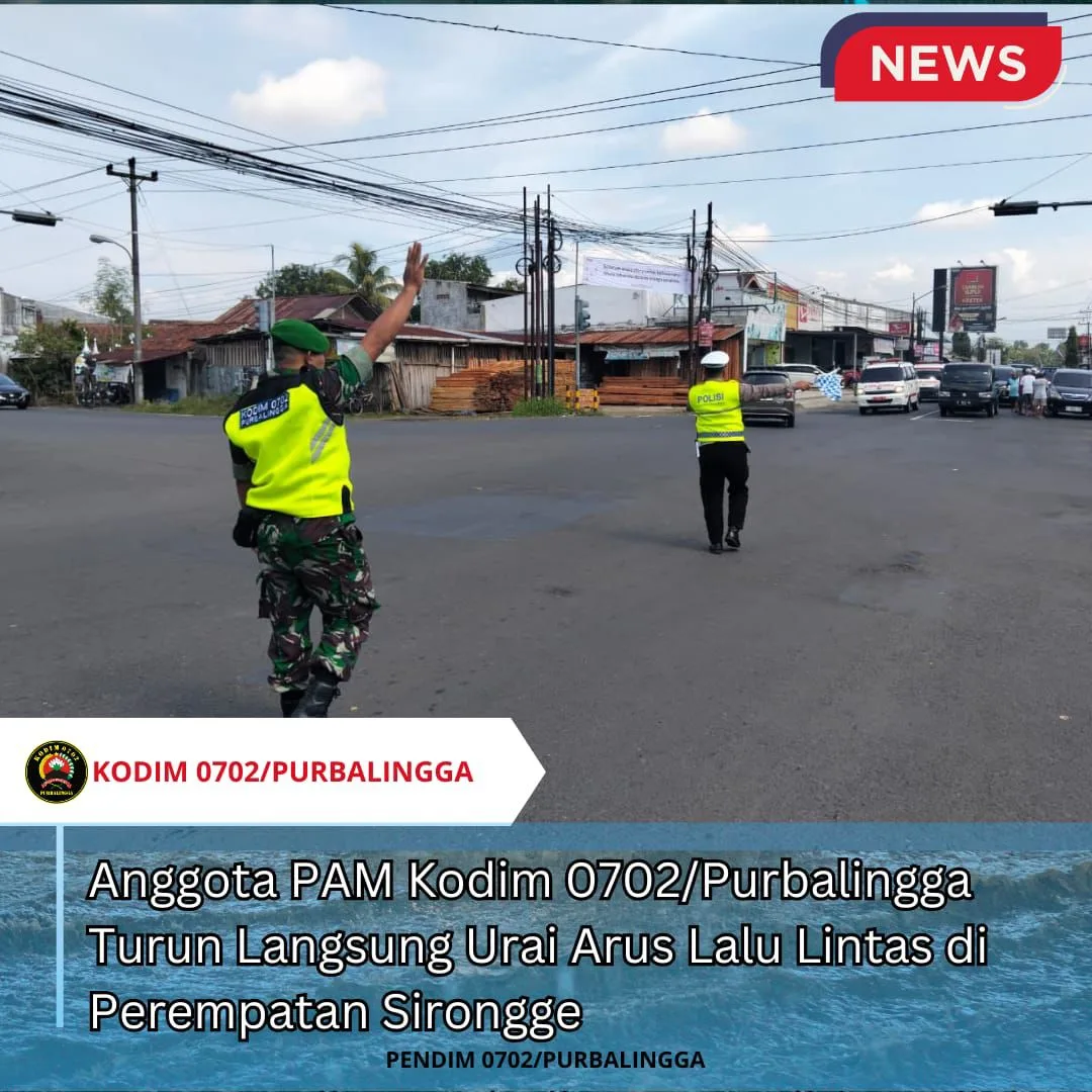 Anggota PAM Kodim 0702/Purbalingga Turun Langsung Urai Arus Lalu Lintas di Perempatan Sirongge