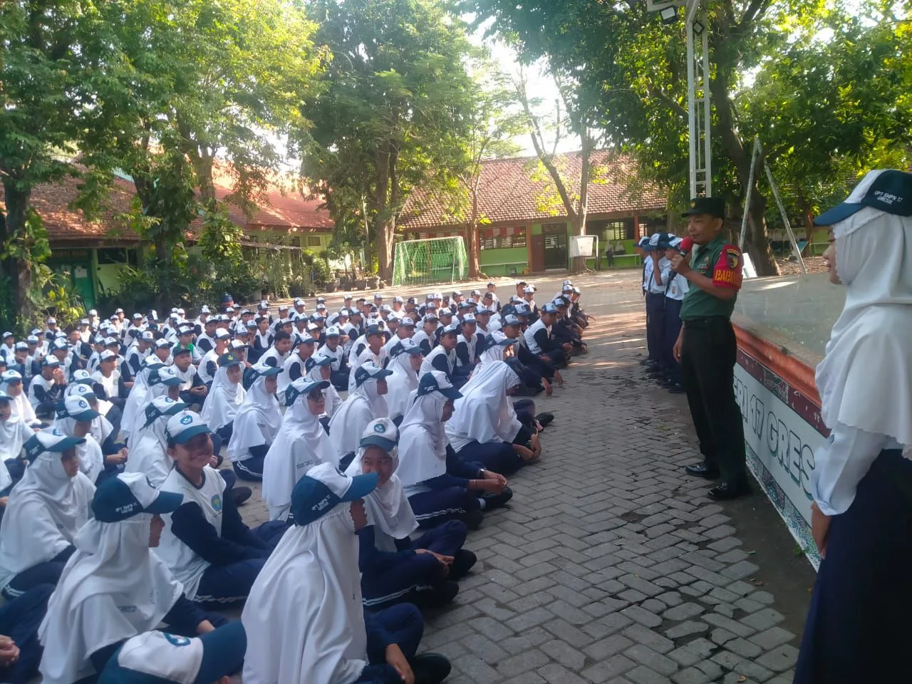 Gresik Faktadetiknews— Dalam rangka kegiatan Pembinaan Teritorial (Binter), Babinsa Koramil 0817/06 Manyar, Sertu Afifudin, melaksanakan pelatihan Peraturan Baris Berbaris (PBB) dan Wawasan Kebangsaan (Wasbang) kepada para siswa SMP Negeri 17 Gresik yang berlokasi di Desa Sukomulyo, Kecamatan Manyar, Kabupaten Gresik. Rabu (4/2/2026).