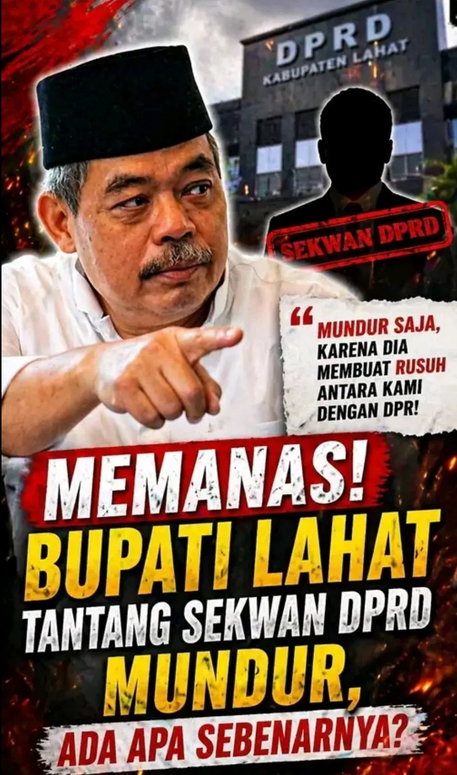 Peristiwa itu terjadi usai pelantikan sejumlah pejabat di lingkungan Pemerintah Kabupaten Lahat, Selasa (21/4/2026). Dalam video yang beredar luas, Bursah tampak meluapkan kegeramannya dan secara terbuka menuding Sekretaris DPRD (Sekwan) sebagai pihak yang memicu kericuhan hubungan antara pemerintah daerah dan DPRD.