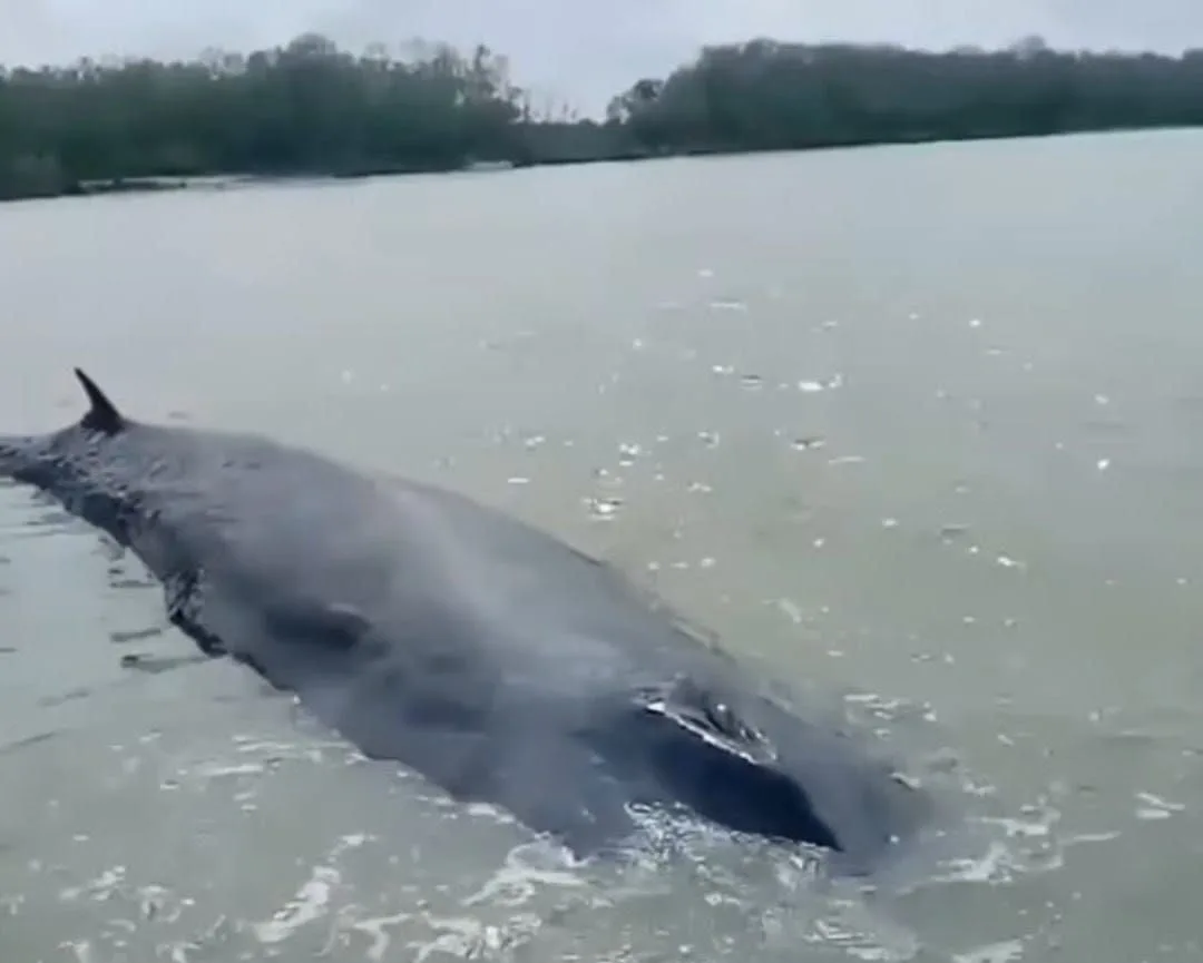 Menurutnya, ukuran paus tersebut sangat besar dan tidak lazim ditemukan di perairan sungai. “Panjangnya kami perkirakan lebih dari 10 meter,” tambahnya.