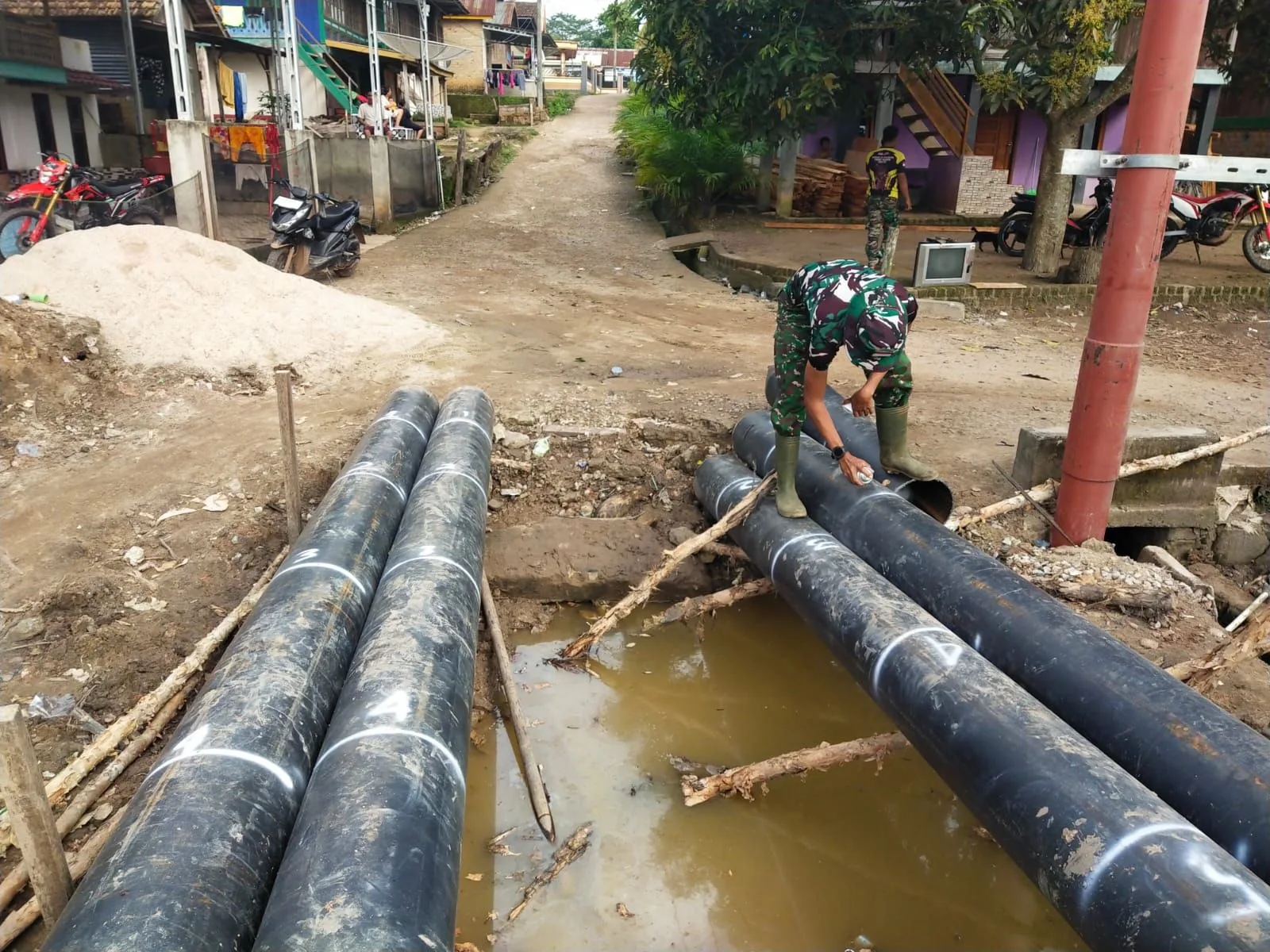 Ia mengungkapkan, dalam proses pembangunan terdapat sejumlah kendala di lapangan, di antaranya meningkatnya debit air Sungai Dabuk yang mengalami pasang setinggi sekitar 50 sentimeter dari kondisi air surut.Meski demikian, hal tersebut tidak menghambat semangat prajurit TNI bersama masyarakat yang turut bergotong royong dalam pelaksanaan pembangunan.