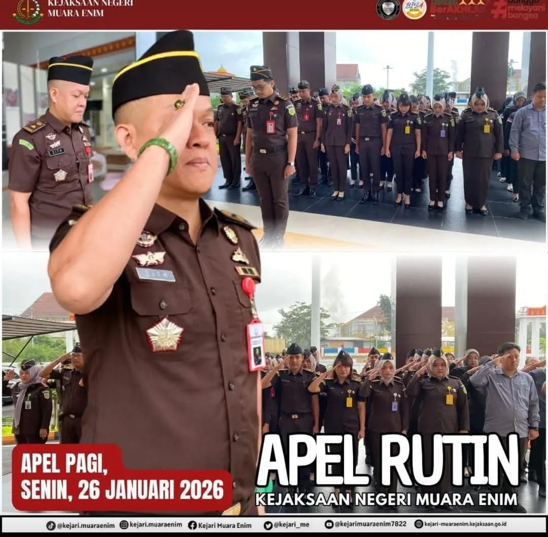 Muara Enim,- Bertempat di halaman Kantor Kejaksaan Negeri Muara Enim Sumatera Selatan ( Senin,26/1/2026) telah dilaksanakan kegiatan rutin berupa apel Senin pagi diikuti oleh para Kepala Seksi, Kepala Sub Seksi (Kasubsi), Jaksa Fungsional, serta seluruh pegawai.