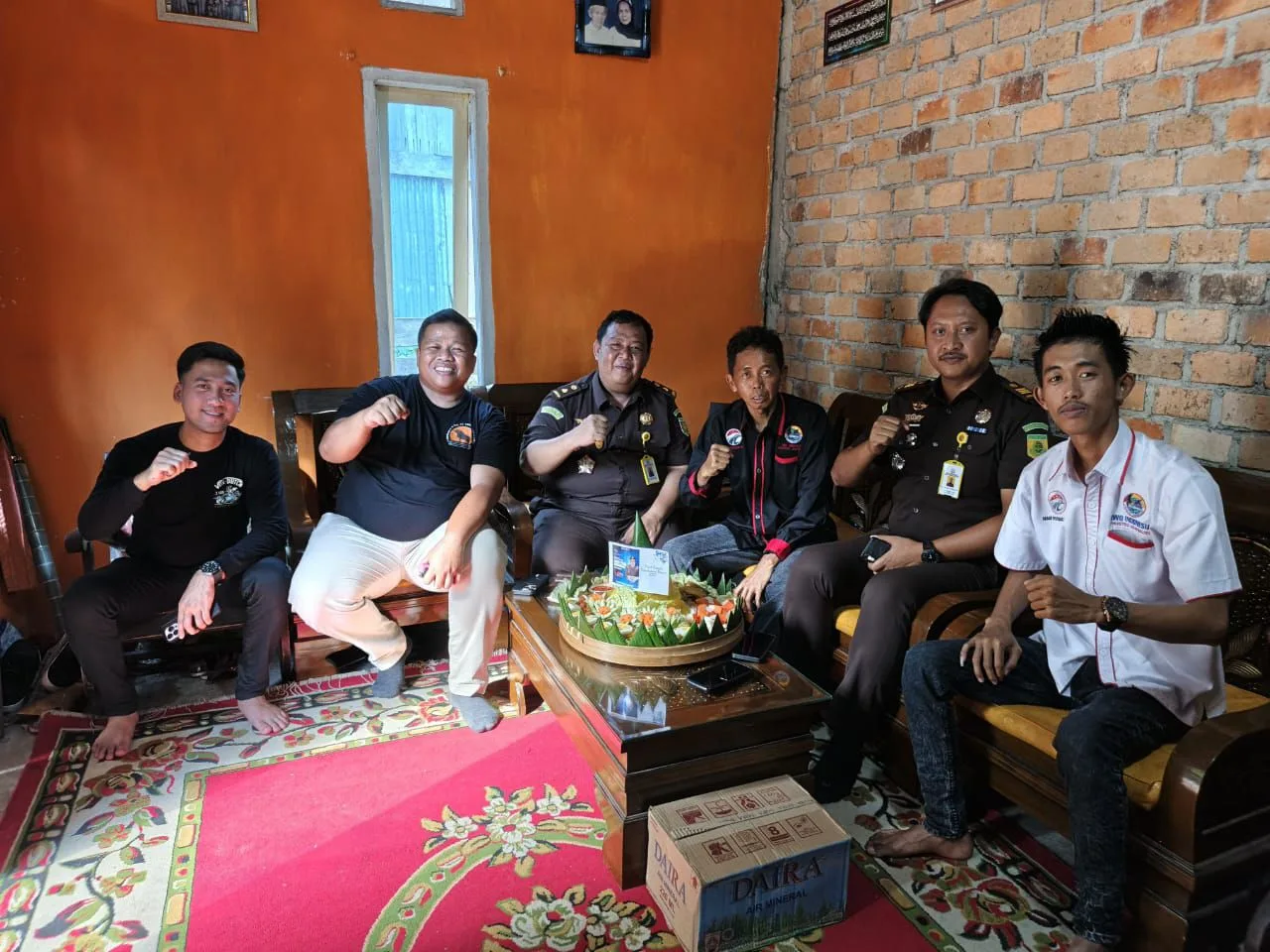 Kedatangan rombongan Kejari OKI disertai dengan membawa nasi tumpeng sebagai bentuk ucapan selamat.