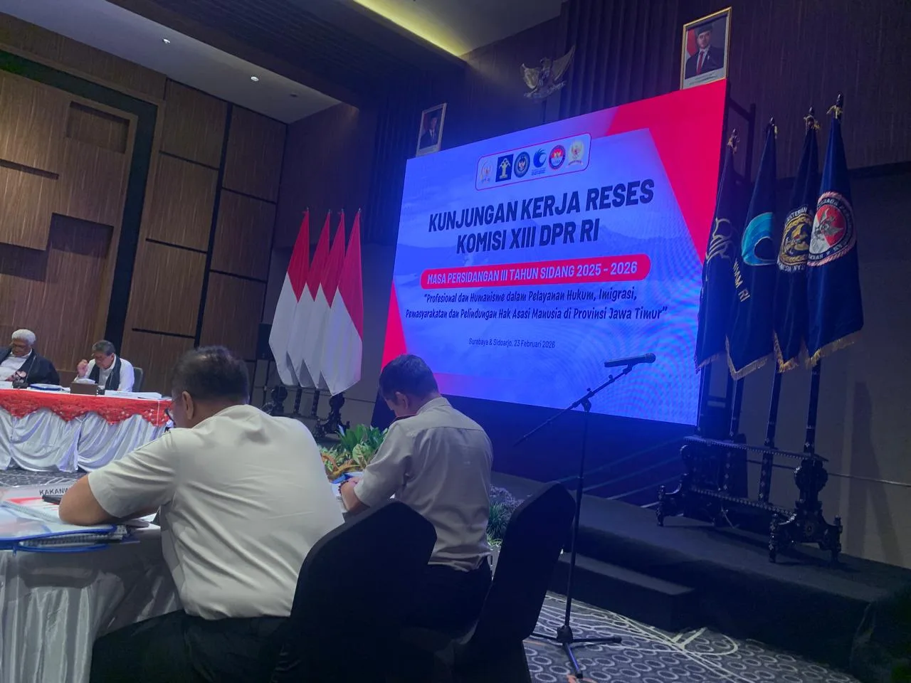 Pamekasan, Faktadetiknews – Kepala Lembaga Pemasyarakatan (Kalapas) Kelas IIA Pamekasan, Syukron Hamdani, mengikuti Kunjungan Kerja Reses Komisi XIII DPR RI Masa Persidangan III Tahun Sidang 2025–2026 di Provinsi Jawa Timur, Senin (23/2). Kegiatan tersebut digelar di Aston Sidoarjo City Hotel dan dihadiri jajaran pemasyarakatan se-Jawa Timur.
