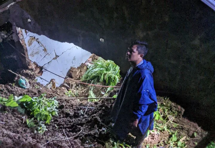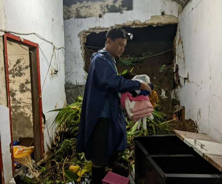 Peristiwa terjadi setelah hujan deras berlangsung sejak pukul 18.30 hingga sekitar 21.30 WIB. Curah hujan tinggi menyebabkan struktur tanah di area perbukitan menjadi labil hingga akhirnya longsor dan menimpa bangunan di bawahnya.