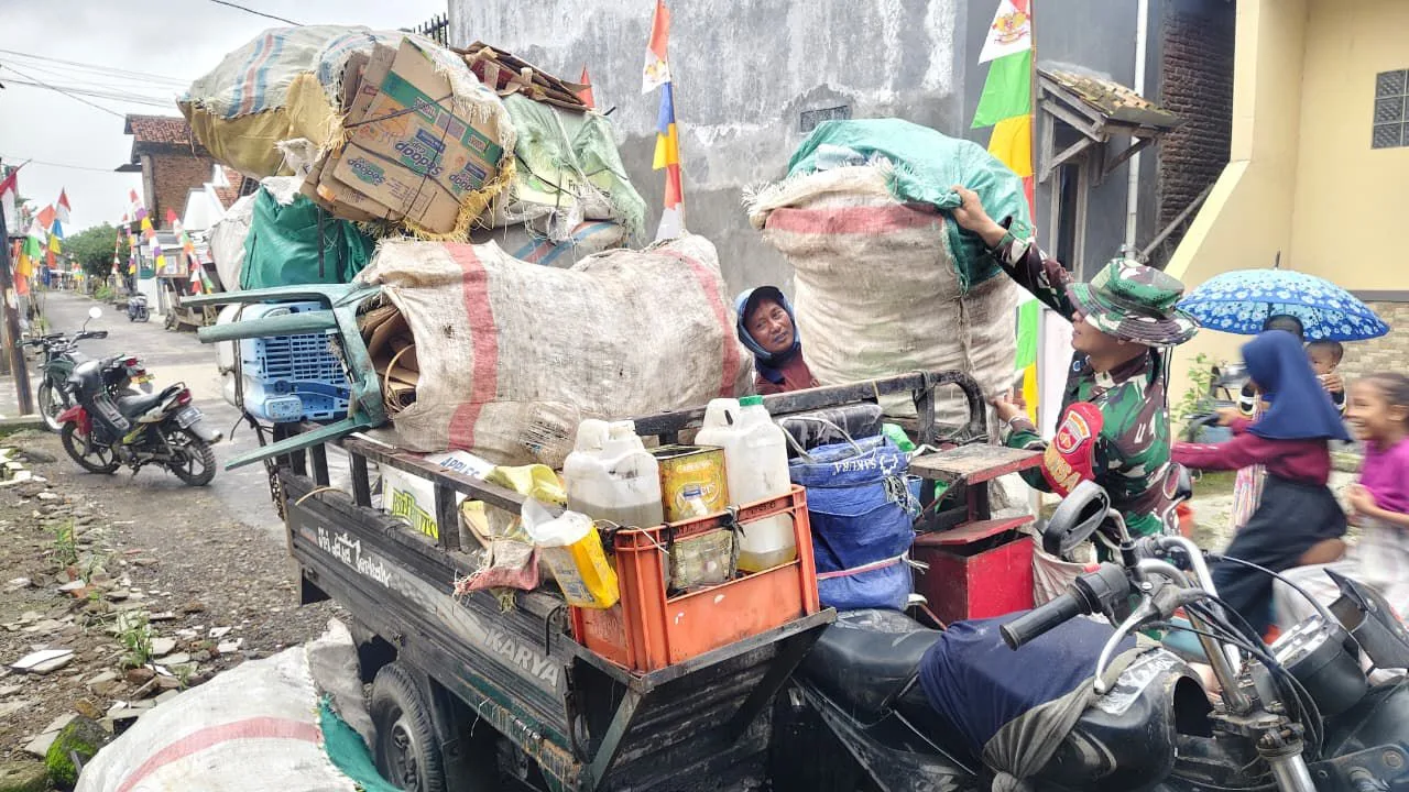 Melihat beban yang cukup berat dan Pak Darmo yang mulai kelelahan, Serda Djoko dengan sigap menghampiri dan membantu menaikkan barang-barang tersebut hingga tuntas.