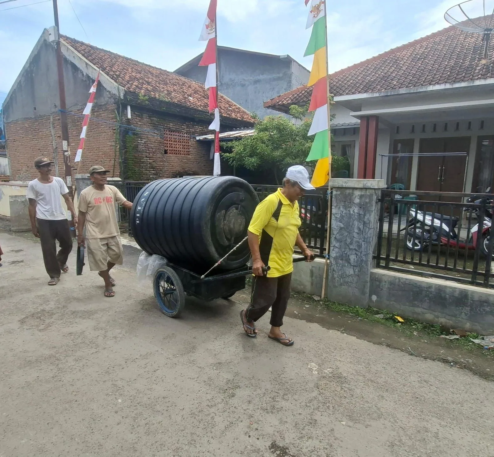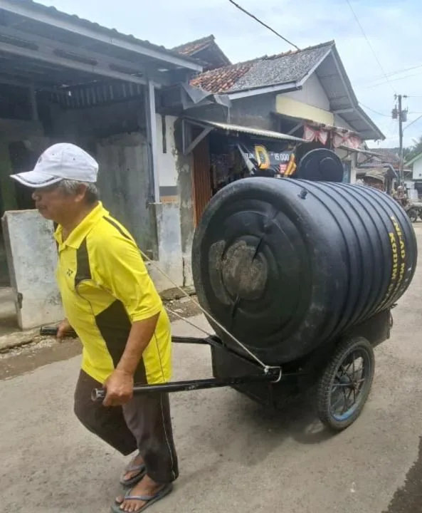 “Walaupun puasa dan panas sekali, tidak apa-apa. Kami dorong pakai gerobak sampai lokasi. Semoga lelah kami hari ini diganti dengan pahala oleh Allah SWT. Ini semua demi kebaikan warga di mushola agar airnya lancar,” ujar Ahmad sambil menyeka keringat di sela kegiatannya.