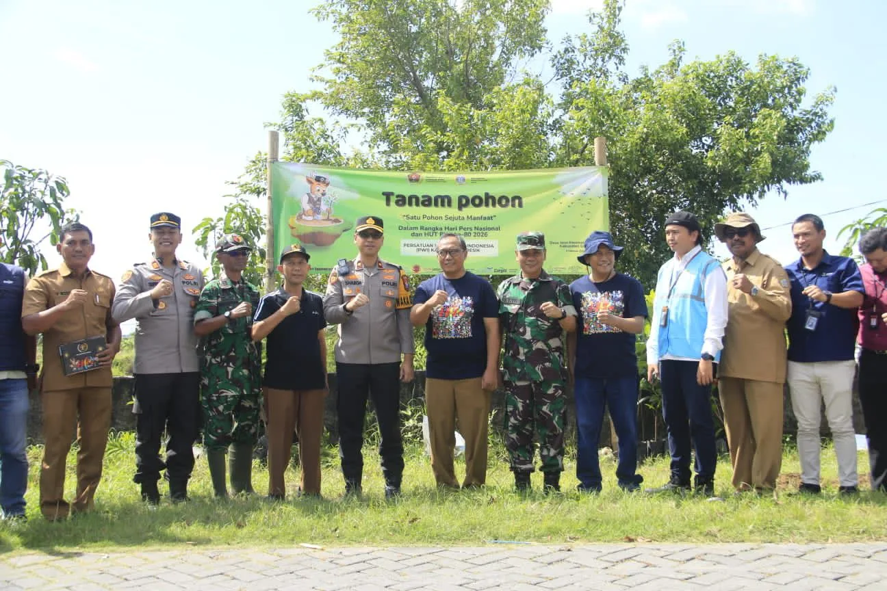 2 Februari 2026 – Pemerintah Kabupaten Gresik mengapresiasi aksi nyata pelestarian lingkungan yang dilakukan Persatuan Wartawan Indonesia (PWI) Kabupaten Gresik melalui penanaman ratusan pohon produktif di Desa Jono, Kecamatan Cerme, Senin (2/2). Kegiatan ini merupakan hasil kolaborasi lintas sektor antara PWI Gresik, instansi pemerintah daerah, serta perusahaan di Kota Pudak.