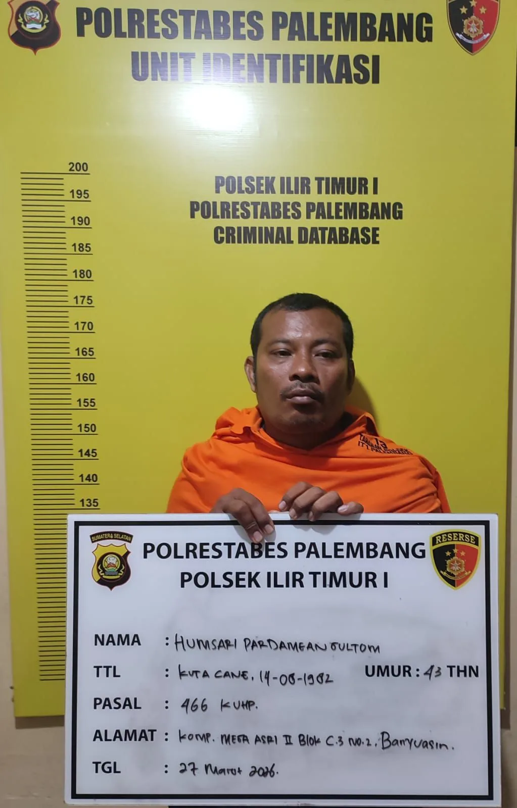Kapolsek Ilir Timur I Polrestabes Palembang, Kompol Fitri Dewi Utami, menegaskan bahwa pihaknya langsung bergerak cepat setelah menerima laporan dan mengamankan tersangka guna mencegah potensi gangguan kamtibmas lebih lanjut.