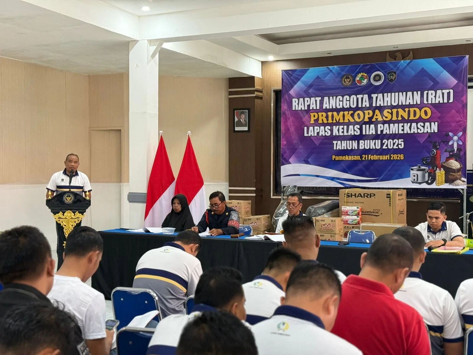 Pamekasan, Faktadetiknews – Lapas Pamekasan melaksanakan Rapat Anggota Tahunan (RAT) Tahun Buku 2025 Primer Koperasi Pemasyarakatan Indonesia (Primkopasindo), Sabtu (21/2), di Aula Lapas Pamekasan. Kegiatan ini menjadi forum tertinggi koperasi dalam rangka penyampaian laporan pertanggungjawaban pengurus serta pengambilan keputusan strategis demi keberlanjutan organisasi.