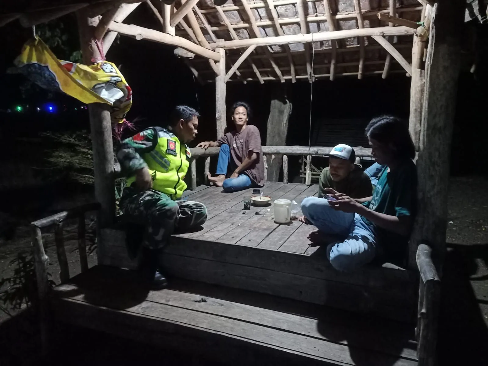 Warga Desa Cikuya menyambut baik kehadiran anggota Satgas TMMD di lingkungan mereka, bahkan saat waktu istirahat malam.
