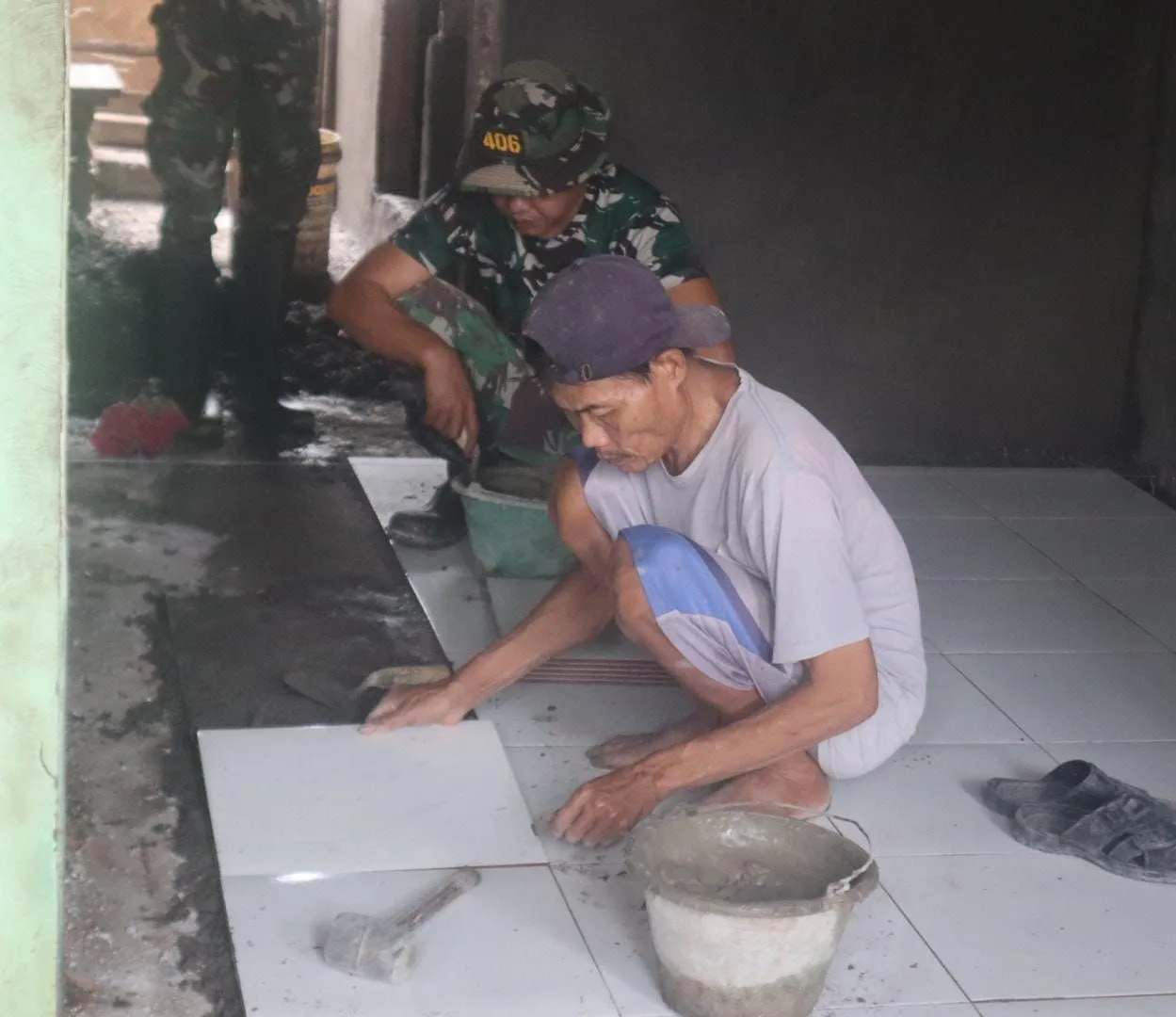 BREBES, Faktadetiknews – Progres pengerjaan sasaran fisik Rumah Tidak Layak Huni (RTLH) dalam program TMMD Reguler ke-127 Kodim 0713/Brebes terus menunjukkan kemajuan signifikan. Pada Kamis (05/03/2026), rumah milik Ibu Rastip di Desa Cikuya kini telah memasuki tahap pemasangan keramik lantai.