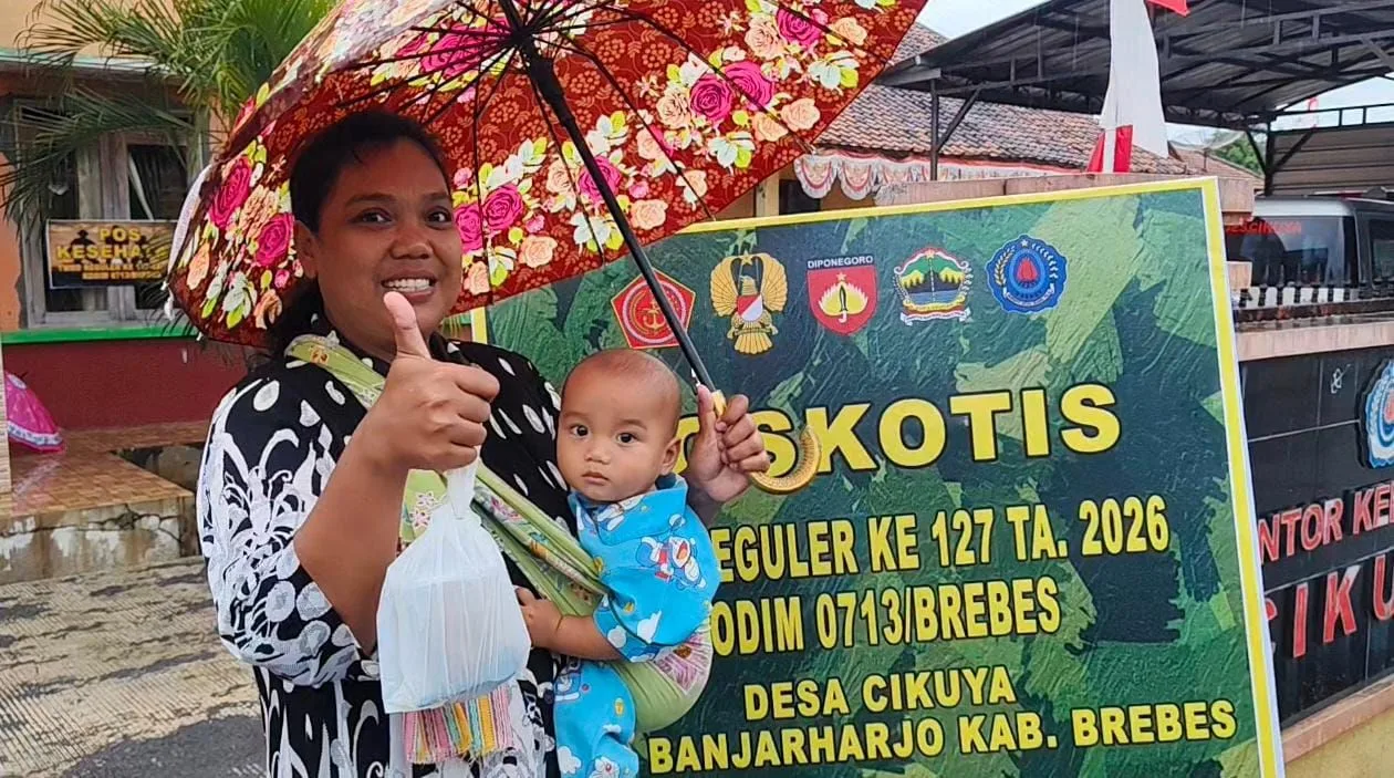 Tidak hanya sekadar menerima, Nurjanah juga memanjatkan doa tulus untuk para personel Satgas TMMD yang telah banyak membantu pembangunan di desanya. “Mudah-mudahan sehat selalu pak TNI,” imbuhnya dengan nada haru.