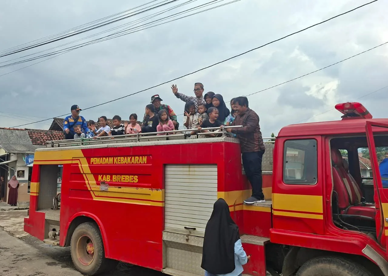 Sebagai bentuk apresiasi dan edukasi kedekatan, petugas Damkar Pos Kersana memperbolehkan anak-anak setempat untuk menaiki mobil pemadam kebakaran (Damkar). Kesempatan langka ini pun langsung disambut antusias oleh puluhan anak yang sudah menanti sejak pagi.