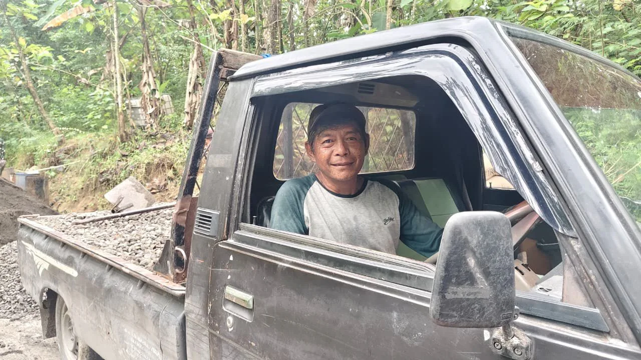 “Jalannya memang masih susah, apalagi kalau habis hujan, lumpurnya dalam. Tapi kalau saya berhenti, pengerjaan beton bisa terhambat. Ini untuk kemajuan desa kami juga,” ujar Yudi di sela-sela aktivitasnya menurunkan material.