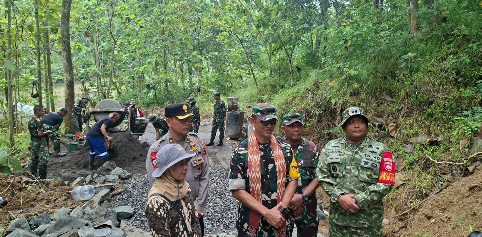“Setiap hari sekitar 30 sampai 40 warga turut membantu kegiatan. Bahkan saat pengecoran jalan menggabungkan 2 Desa sepanjang kurang lebih 1.500 Meter, yang diperkirakan selesai dalam sebulan ternyata dapat diselesaikan lebih cepat berkat gotong royong warga dan Anggota Satgas,” ujarnya.