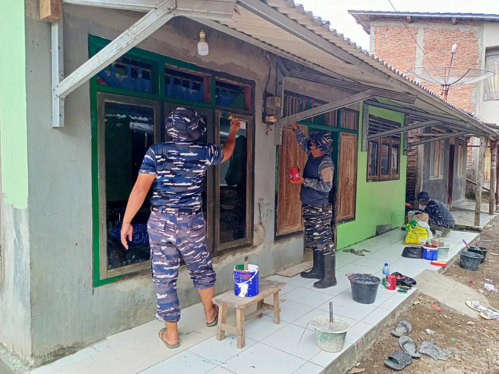 Kali ini, personel dari TNI AL (Lanal Tegal) yang tergabung dalam Satgas TMMD bahu-membahu melaksanakan tahap pengecatan rumah tidak layak huni (RTLH) milik Ibu Caski di Desa Cikuya, Kecamatan Banjarharjo. Jum’at (27/02/2026).