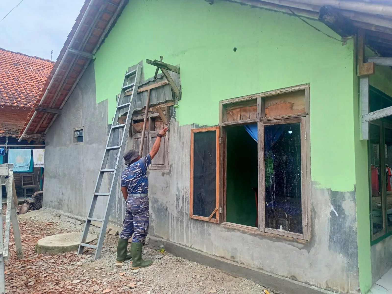 TNI AL Bersinergi Percantik Rumah Bu Caski Dalam Program RTLH