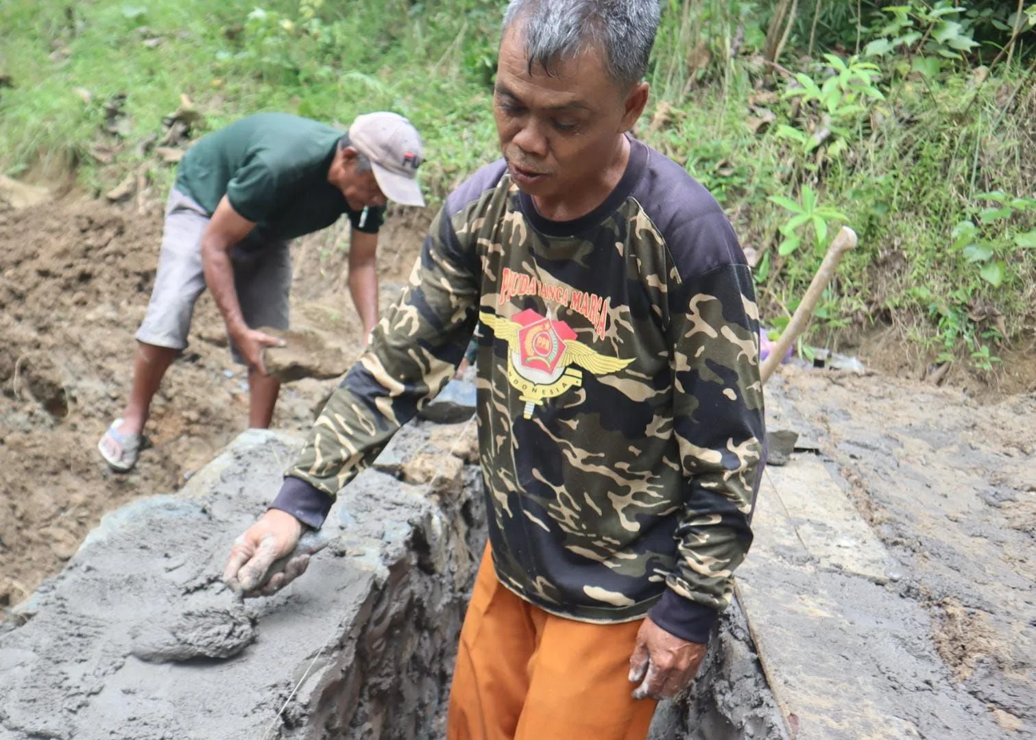 Dalam pengerjaan sasaran fisik hari ini, Wasad terlihat mahir dalam menyusun batu belah untuk fondasi talud dan memastikan presisi pemasangan bekisting. Keahliannya ini diakui oleh para personel TNI yang bekerja bersamanya. Ketelitian Wasad dalam mencampur adukan semen dan menata material bangunan menunjukkan bahwa ia bukan “orang baru” di dunia konstruksi.
